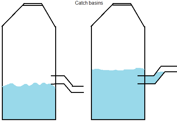 When you have a pipe in the catch basin (curbside sewer), does the pipe that continues to the street sewer, go up, or down?