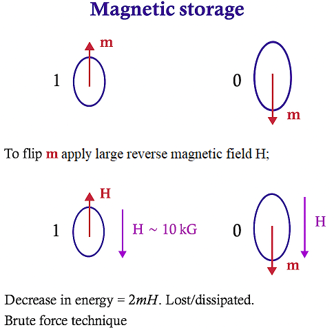 They’re tiny enough that quantum/statistical effects matter (thermal fluctuations can randomize them if they’re too small, called the superparamagnetic limit). And as this energy is not recovered, it’s dissipated as heat, is why it's called a “brute force technique.”