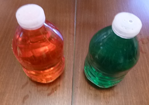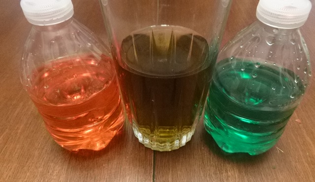 Therefore, the word green is often used to represent 2 different colors. Below is an example of mixing red and green liquid.